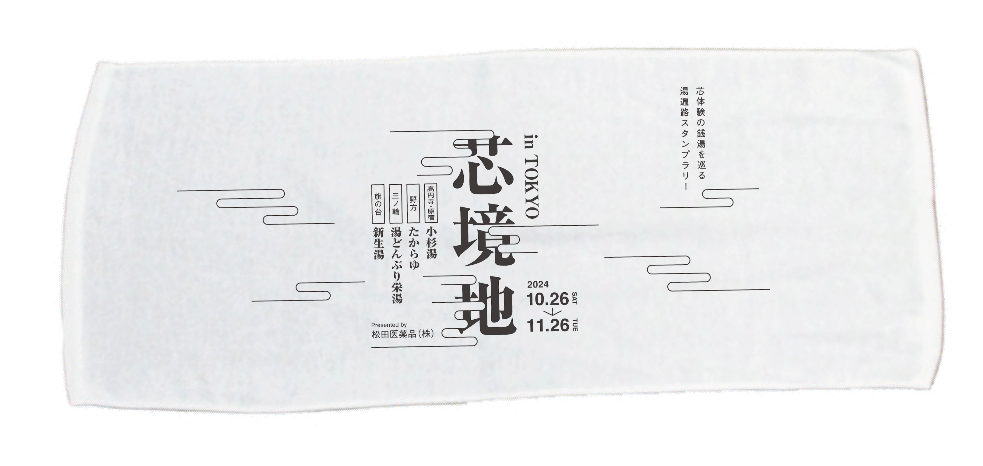 10月26日(土)から11月26日(火)までの1ヶ月間、松田医薬品と東京都内の4つの銭湯、小杉湯(高円寺、原宿)・新生湯・たからゆ・湯どんぶり栄湯が贈る、特別な銭湯スタンプラリーイベント「芯境地」が開催されます。