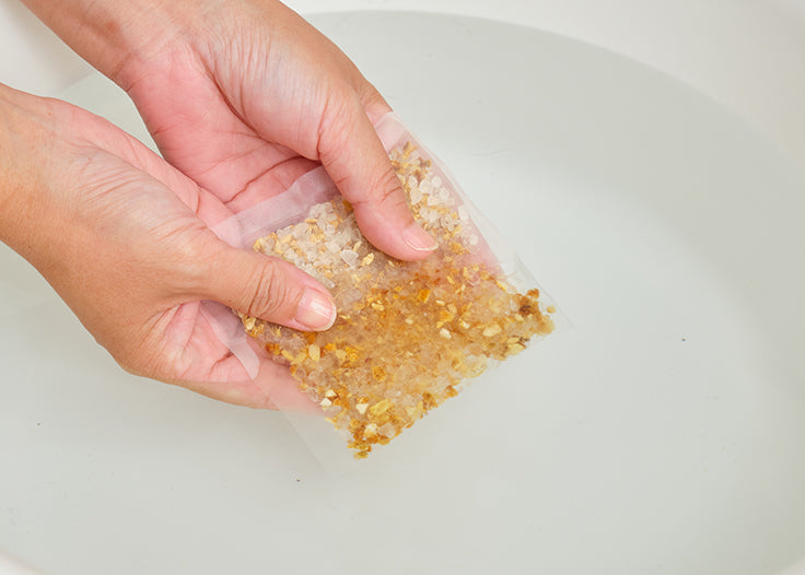 ※中のメッシュ袋はやぶらずにそのままお湯に入れ、軽くもみ出すようにお取扱いください。