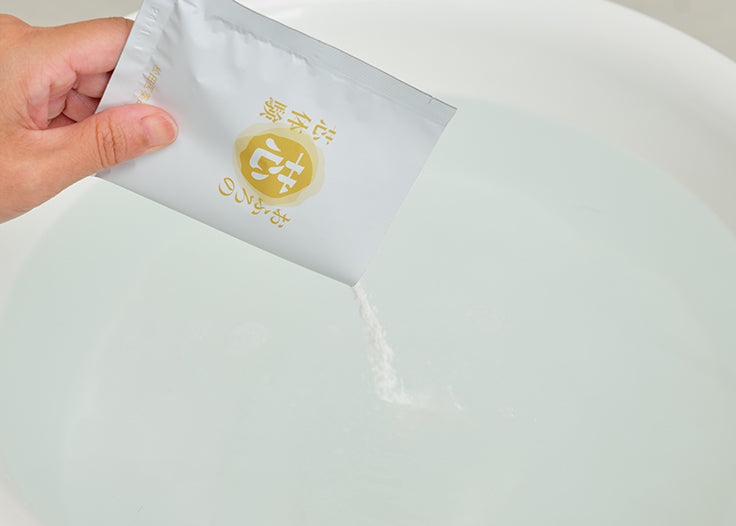 浴槽の湯(約200L)に対し、本品1包(50g)を入れて、よくかき混ぜてから入浴してください。